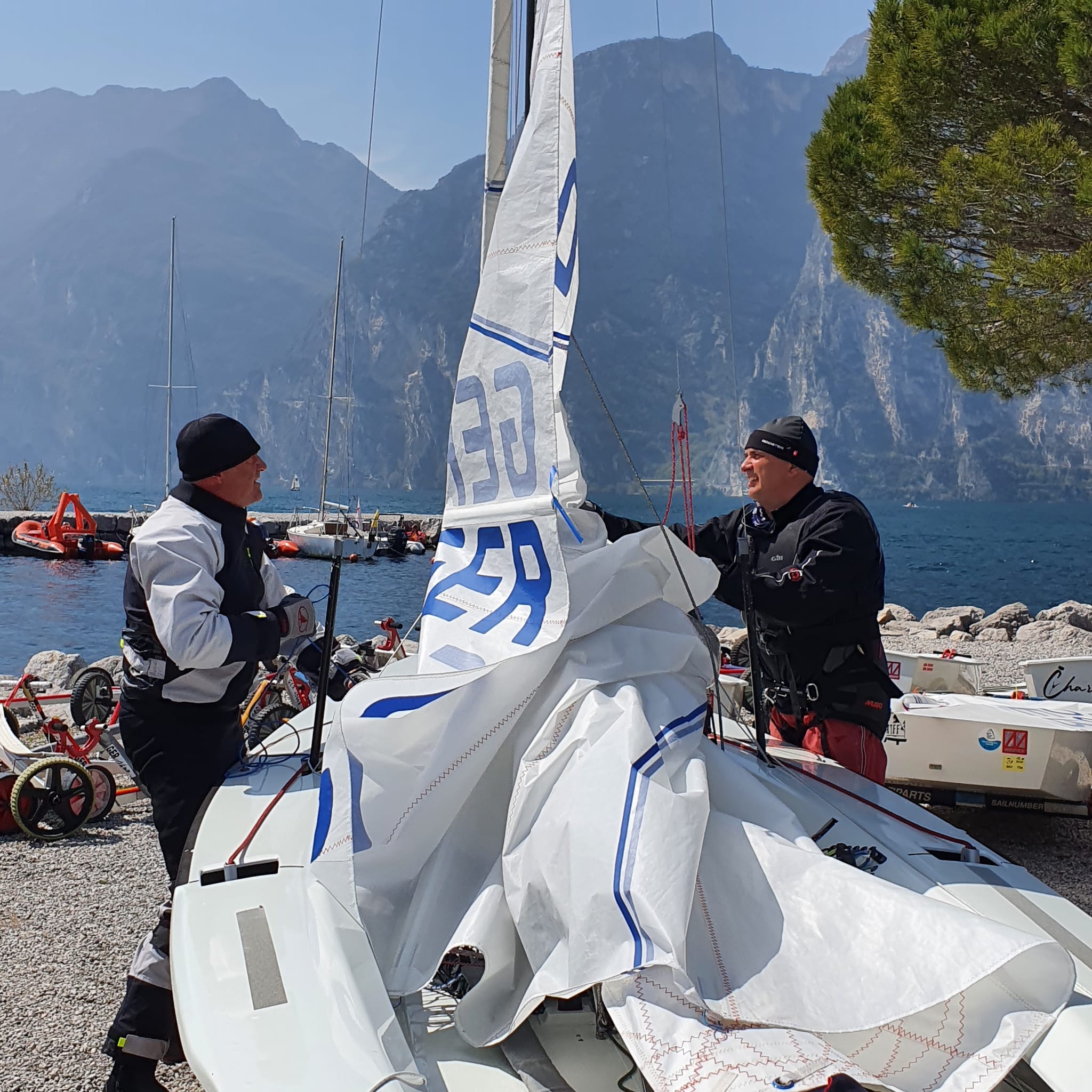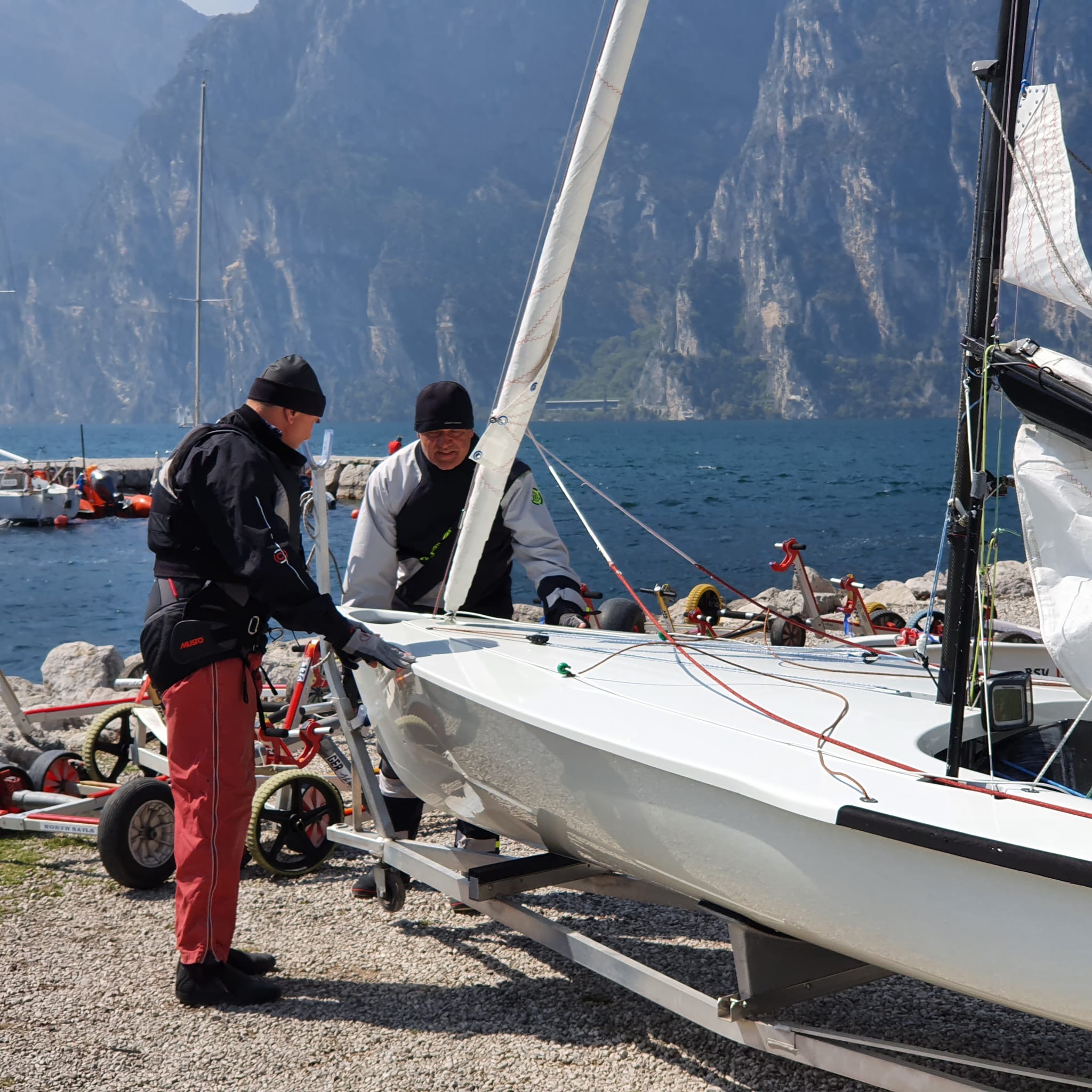 Aber auch unsere Großen sind bereits aktiv in der Saisonvorbereitung. Unser Steini (Frank Seinmeyer) ist ebenfalls am Gardasee und trainiert in Zusammenarbeit mit Ralph Behrens vom Schaumburg Lippischer Segler Verein (SLSV / Steinhuder Meer) auf einem FD (GER 6). Die alte Schule ist nicht zu verkennen!